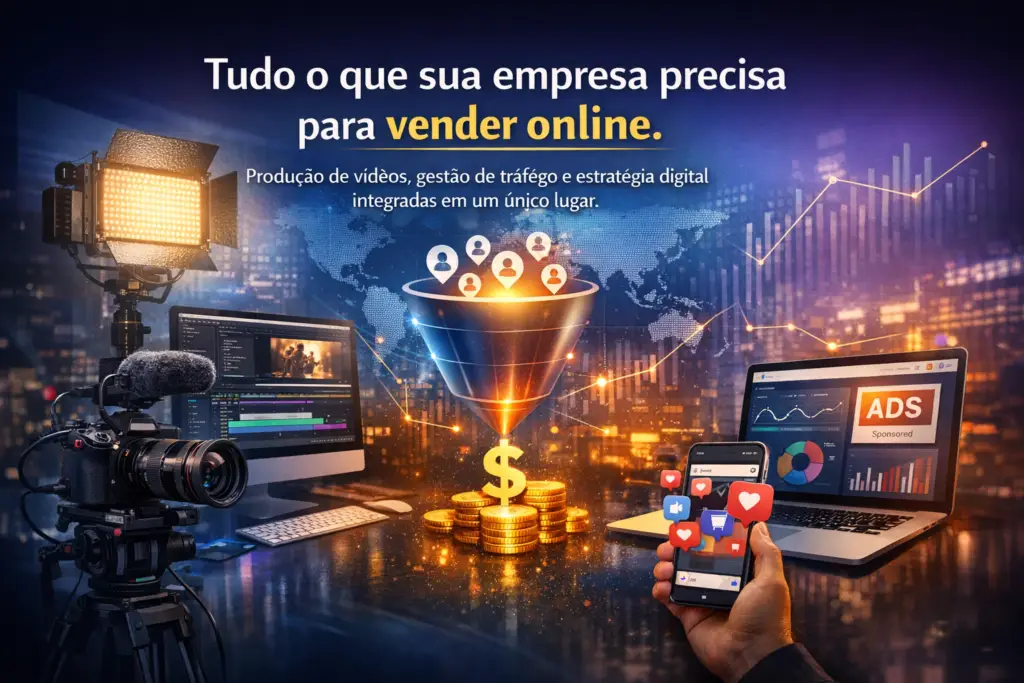 Produção de vídeos, gestão de tráfego e estratégia digital integradas em um único lugar.